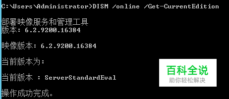 运行->CMD(管理员)->输入DISM /online /Get-CurrentEdition 看你的Edition ID是什么,如果是Evaluation的话,例如Standard一般就 ServerStandardEval把后面Eval那四字母去了就是你的Edition ID。 如我的就是ServerStandard