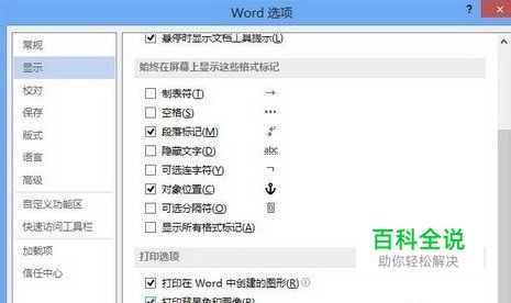 打开“Word选项”对话框,切换到“显示”选项卡。在“打印选项”区域选中“打印背景色和图像”复选框,并单击“确定”按钮即可,如图2所示。