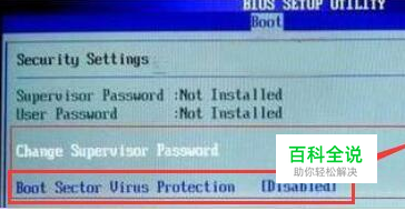 之后在窗口中,选择“Boot Sector Virus Protection”将后面状态改为“Enabled”,完成设置后,保存重启即可。 如下图所示: