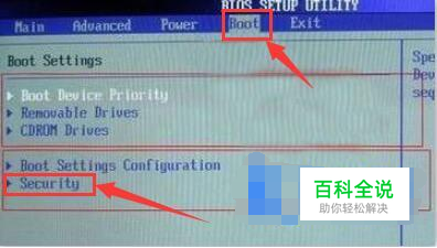 重启电脑,按快捷键进入bios界面(按相应电脑品牌快捷键进入),然后选择“boot→security”,如下图所示: