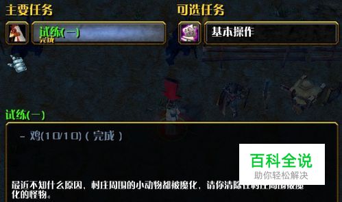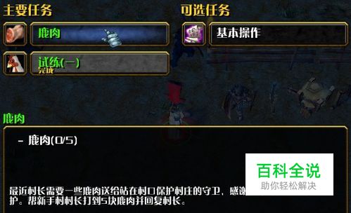 任务(新手村): 主线任务1.1试练一 任务等级:1 任务地点:新手村 任务NPC:新手村村长 任务说明:最近不知什么原因,村庄周围的小动物都被魔化,请你清除在村庄周围被魔化的怪物! 鸡*10 任务奖励:经验*100 钱*1000 乌木剑*1 主线任务1.2慰问村庄守卫 任务等级:3 任务地点 新手村 任务NPC:新手村村长 任务说明:最近村长需要一些鹿肉送给站在村口保护村庄的守卫,感谢他们多年来的守护。帮新手村村长打到5块鹿肉并回复村长。 任务奖励:经验*150 钱*500 金项链*1