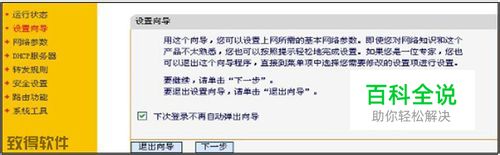 在你电脑的IE浏览器地址栏中输入FAST路由器的默认地址:192.168.1.1,并在弹出的对话框中输入FAST路由器的默认用户名和密码都是:admin、admin。 选择设置向导,单击下一步;