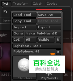 Tool>save as保存的.ZTL文件,是一个工具(Tool)。如果想制作三维模型,就要保存这个文件,下次再使用时可以用Tool>load命令调入,原来的细分级别等信息仍然会保留。