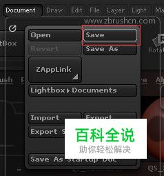 Document>save保存的.ZBR文件,是只有ZBrush才能查看和编辑的格式,带有深度信息,但已经不能改变模型的角度,因此一般不建议使用这个模式。
