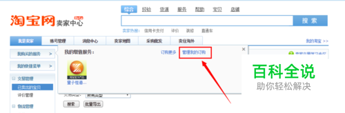 打开淘宝后台卖家中心。点击我购买的服务--管理我的订购。