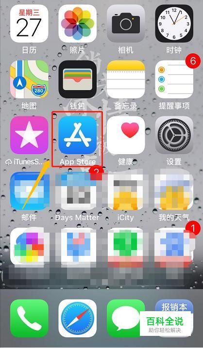 在苹果手机的桌面上找到下图所示的"App Store",进入以后点击右下角的"搜索";