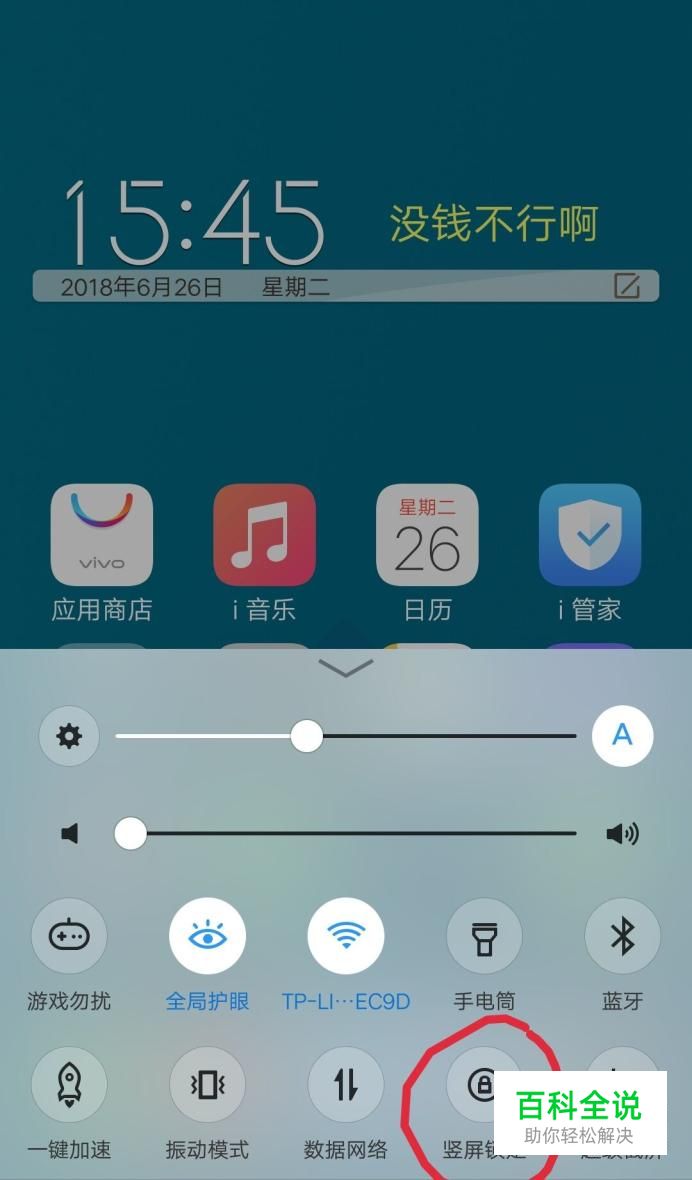 把竖屏锁定点一下点亮了就开启成功了!