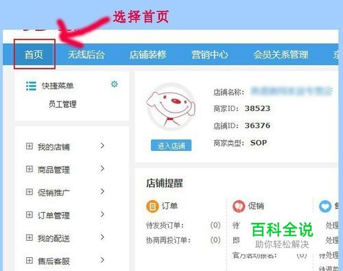 进入京东后台页面,并击“首页”;