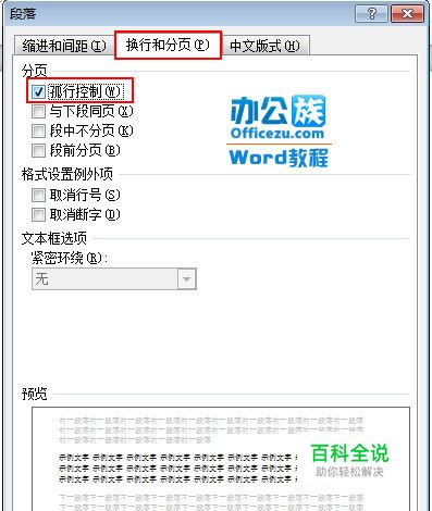 在“段落”窗口中设置“孤行控制”,设置完毕后,点击“确定”按钮。