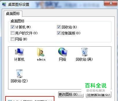 在“桌面图标设置”对话框中,将“允许主题改变桌面图标”前面的复选框取消勾选,然后单击“确定”。
