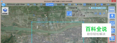 影像下载 影像须使用BIGEMAP地图下载器中Google Earth无偏移影像,并具有无Google小水印、免封IP、影像更新更快等特点。首先在图源列表中选中Google Earth图源,实现与矢量数据准确套合、叠加。在此通过矩形区域选择下载边界(如图 1所示),然后双击下载并选择合适的层级(如图 2所示)。