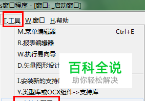 利用易语言编程环境创建一个“Windows窗口程序”。点击菜单“工具”->“支持库配置”项。