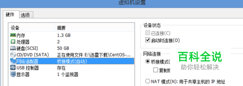 现在打开VMWare,CentOS 7.2,单机编辑虚拟机设置,选择网络适配器,在网络连接中选择桥接模式,或者可以选择仅主机连接也行。