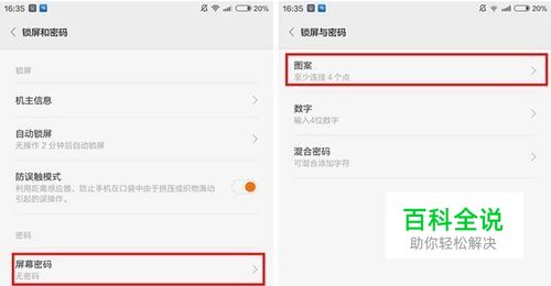 【设定锁屏密码】:在刚才的界面中,设定任意一种锁屏密码,这样即使不在裤兜里,如果没有开锁,手机也不会轻易被误触激活,当然这也是入门