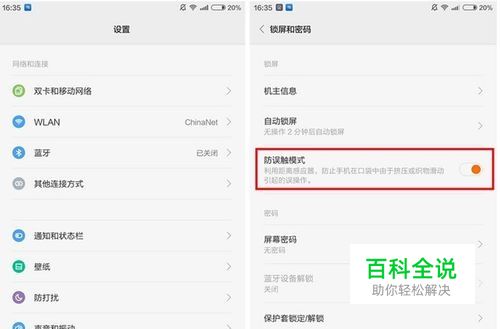 ▼【开启防误触模式】:在设置-锁屏和密码-打开防误触模式,这样手机利用光线和距离感应器,在放在裤兜里即使碰到了解锁按钮,也不会轻易解锁;当然这个方法偶尔会碰上感应器异常,可以擦拭干净感应器表面,或者进行校正;当然对于我们今天的主题来说,仅仅是入门