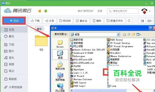 先点击微云中的“添加按钮”,然后选择上传自己的文件,最后打开就可以进入上传页面了。