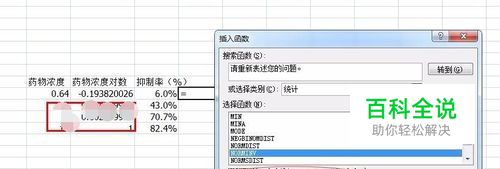 将抑制率转化为概率单位,在插入函数栏下选择在“统计”栏中找到函数NORMSINV()+5.