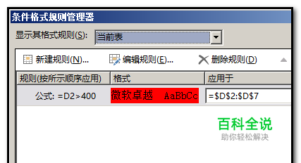 如果这里显示不全,鼠标放在该规则上,鼠标下方弹出完整的规则。 规则右侧的格式就是在此规则下,显示的格式