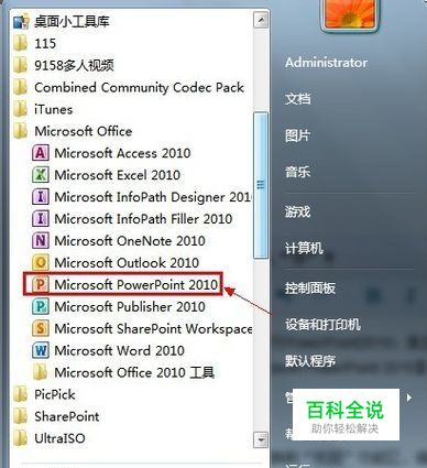 打开PowerPoint2010:单击【开始】→单击【所有程序】→单击【Microsoft Office】→单击【Microsoft PowerPoint 2010】