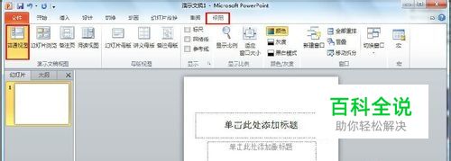 切换到“视图”功能区,确保“演示文稿视图”组中选择“普通视图”,鼠标定位在某页幻灯片上