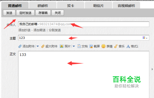 然后点击写信,将你所需要填写的话写完整即可,然后你点击上方的“定时发送”