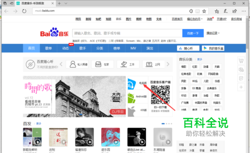 打开浏览器,在网址的地方输入http://music.baidu.com/,按回车。