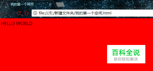 你会发现记事本成了网页的文件了,双击打开,就会看到一个背景为红色,内容为HELLO WORD的文本内容,如图所示