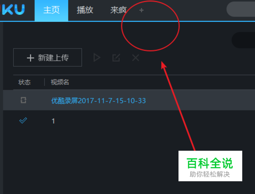 在优酷PC端的软件上最上方点击+号,可以看到以下三个小功能。