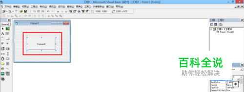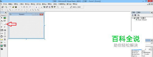 打开vb6.0软件并 点击command控件(箭头指向处)。