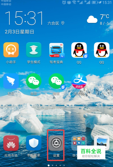 首先,我们打开我们的手机荣耀V10,然后我们点击设置;