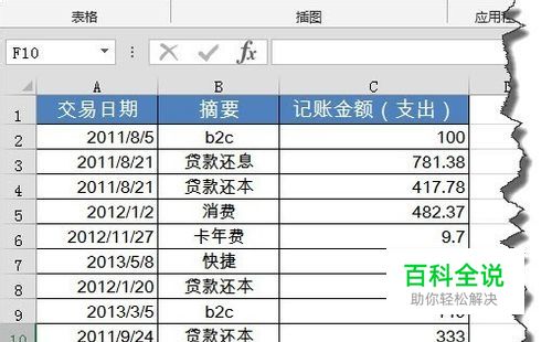 如图所示,我们看到下面的数据,我们想按月统计消费总金额,怎么操作呢。