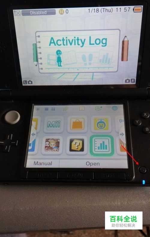 首先,我们要把3DS关机,注意关机按钮在箭头所指处。