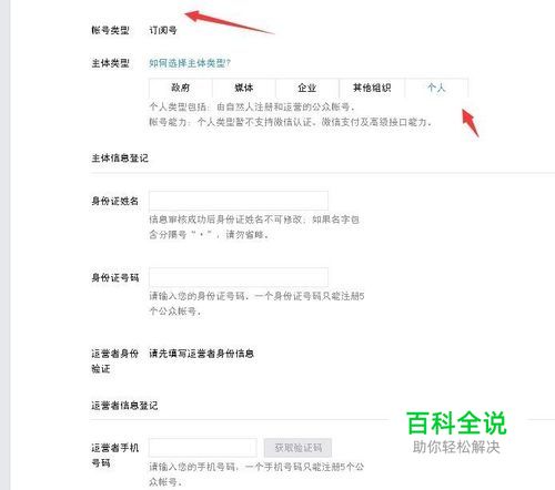 返回上一步,再来看一下个人注册需要的资料,大家根据自己的类型选择合适的注册项目,填上需要的资料就可以了