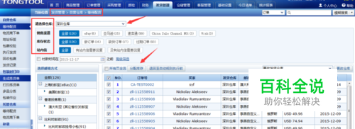 第一步:分配库存(位置:发货管理——等待配货) 1、 选择发货的仓库,销售渠道,库存状态、是否有站内信需要处理等 2、 勾选订单,单击“分配库存”