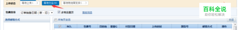 第二步:物流商下单(位置:发货管理——物流商下单) 1、成功分配库存的订单走到物流商下单界面,单击“批量上传”将包裹订单信息上传到物流系统 2、成功上传到物流系统的包裹会走到在“等待交运”处,单击“交运”,交运成功后物流系统会返回跟踪号