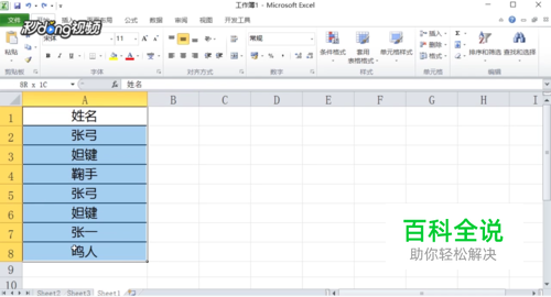 打开Excel表格,以样表为例,在A1-A8添加数据样品。