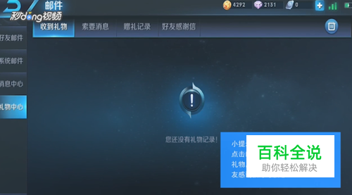 进入游戏大厅,点击“邮箱”,邮箱页面左侧列表中有礼物中心。