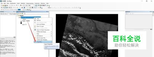 打开arcgis,加载需要处理的遥感影像,在数据原图层上右击,点击属性