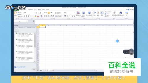选中“汇总”表的A1单元格,点击“数据”下的“合并计算”。