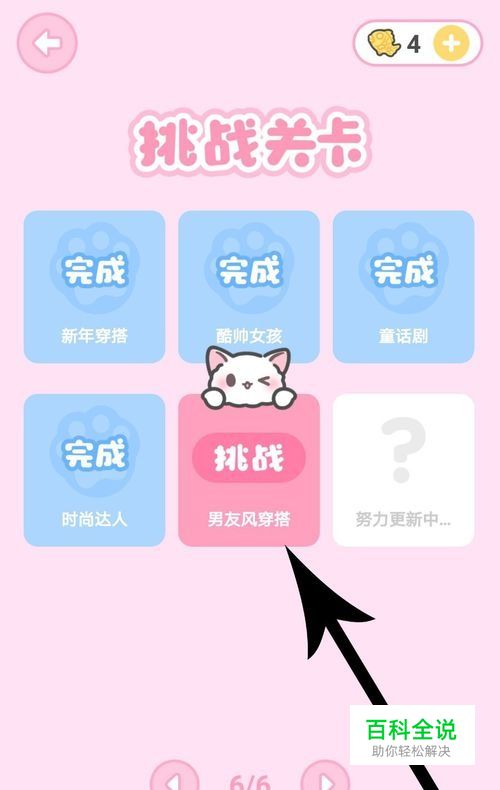 打开关卡 打开装扮少女挑战关卡第6页,然后点击“挑战 男友风穿搭”