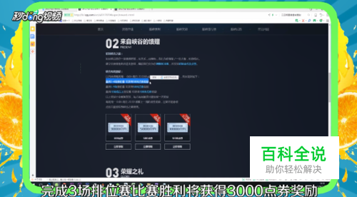 具体场数和奖励规则如下: 召唤师每周六、周日、周一、周二内完成三场排位赛胜利将获得3000点券奖励。