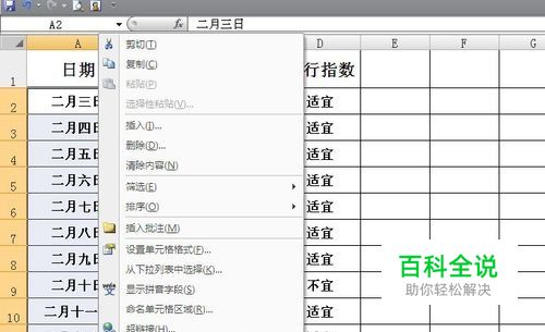给日期列同时加入年份,选定区域点击右键,选择设置单元格