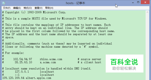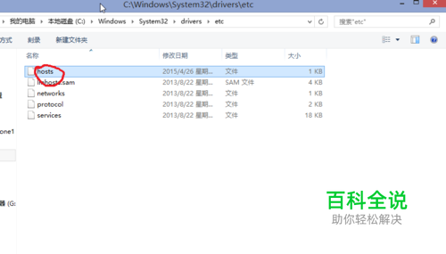 进入C:\Windows\System32\drivers\etc,用记事本打开hosts这个文件。