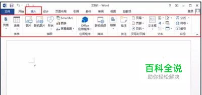 “插入”菜单选项卡包含页面、表格、插图、应用程序、媒体、链接、批注、页眉和页脚、文本和符号几个分组功能区,其主要作用是用于在Word文档中插入各种元素。如图所示;