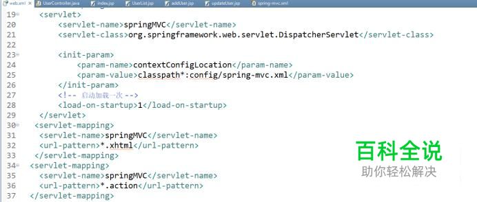 新建web项目,再web.xml文件中配置SpringMVC核心控制器,具体代码见下图。