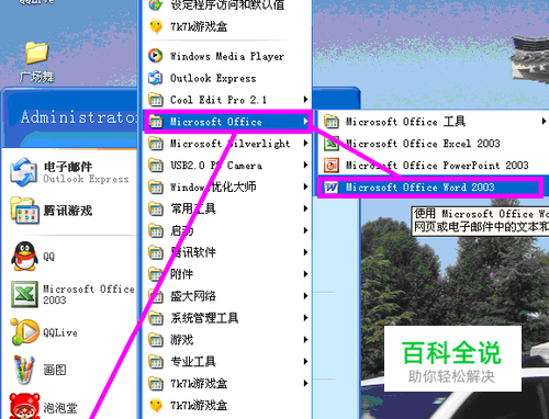 打开“开始”——“所有程序”——"Microsoft office"——“Microsoft Office word2003”。