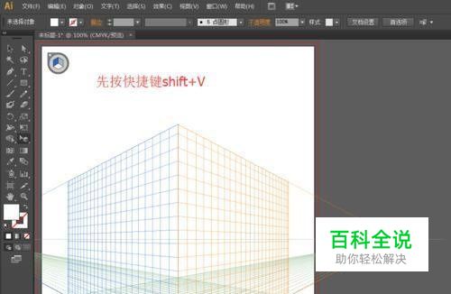 2、透视网格打开后,现在我们要将其关闭。先按快捷键shift+V,如下图所示。