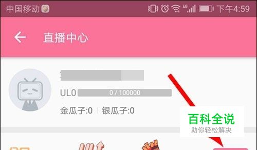 进入到直播中心页面后,注意查看,可以在如下箭头所指位置找到“签到”按钮,点击此位置即可进行签到