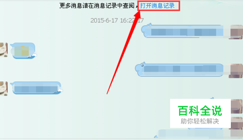 这时,细心的小伙伴就会发现,当我们多次点击查看更多消息之后,聊天窗口会在最后显示如图所示的字样,这说明在聊天窗口已经显示完了消息记录,如果我们想要查看更多的消息记录,就要点击上方的 “打开消息记录”。