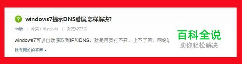 最近有些知友提出,在Windows 7系统操作过程中,出现DNS错误而导致计算机不能上线。其实是我们访问一个域名时无法完成将其解析到IP地址的工作,也就是DNS解析出现故障。
